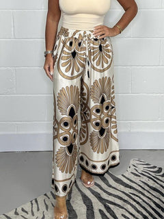 Feel comfortable and stylish wherever you go! These satin track pants combine comfort and fashion in one sleek design. The elastic waistband and loose, wide-leg fit offer maximum freedom of movement, while the beautiful printed design adds a modern, trendy flair. Perfect for casual days out or lounging in style, these pants make a statement without compromising comfort.